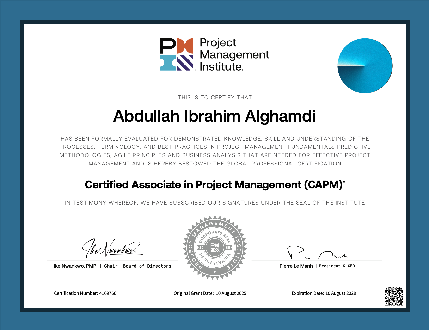 In addition to my technical expertise, I am a certified CAPM®, which enhances my ability to manage projects with a structured and goal-oriented approach. This blend of data analysis and project management allows me to deliver solutions that are not only accurate and insightful, but also aligned with business objectives and real-world impact.